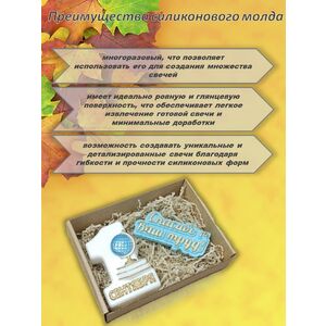 Молд для создания декора подходит для различных видов хобби, таких как мыловарение, изготовление свечей. Приятно и легко работать с молдами. Прочный и гибкий силикон обеспечивает высокое качество объемных и реалистичных фигур, в которых каждая деталь отчетливо видна. А его эластичность позволяет извлекать даже самые сложные фигурки с мелкими деталями. Формы идеально подходят как профессиональным мыловарам для создания мыльных композиций и фигурок, так и новичкам изготовления мыла ручной работы в домашних условиях . Силикон не впитывает запахи, термоустойчив до 200 градусов. Формочки позволяют получать реалистичные фигурки из гипса, эпоксидной смолы и глины. Это универсальный инструмент для творческих людей. В данном молде можно изготовить и декоративную статуэтку для праздника, свечи и оригинальные фигуры из мыла.